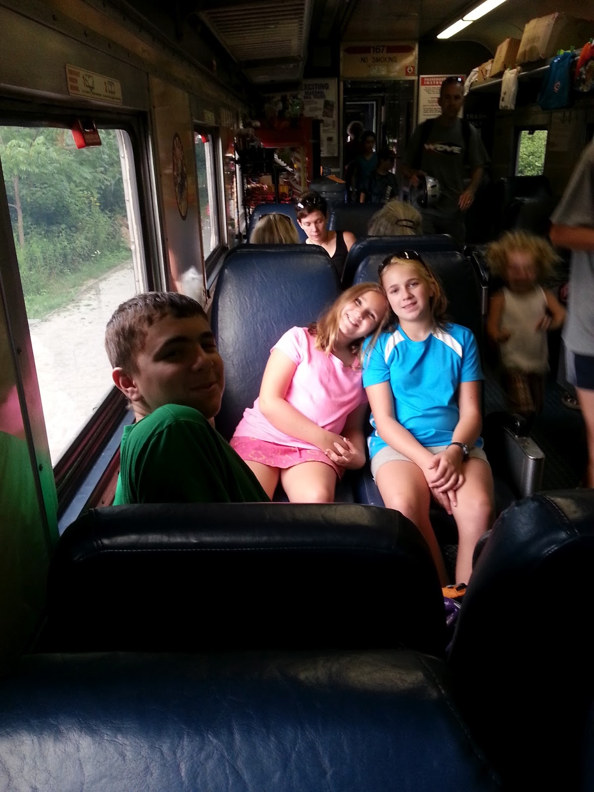 They have a great bike and hike trail system, so we headed out for a bike ride. What makes this park extra special is that they have a train that runs along the trail, so when you get tired, you can just hop the train back to where you started! How awesome is that?!?!? No worries about planning ahead, figuring how far out to go, so that you're not too tired to get back. No worries about how to get everyone back when Maggie "just can't go another mile".